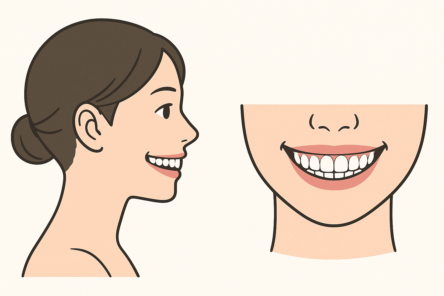 ②側貌(横顔)と正貌(スマイル時の歯の見え方)