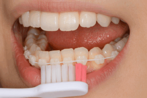 ○舌側矯正中のブラッシング
