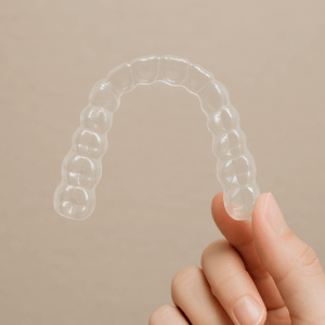 ↑ アライナー型矯正装置は透明な見た目で取り外しできるので人気があります