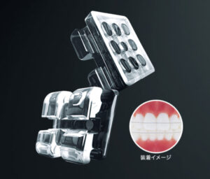 ↑ 透明なポリアミド製のクリアブラケットの一例(トミーインターナショナル社)