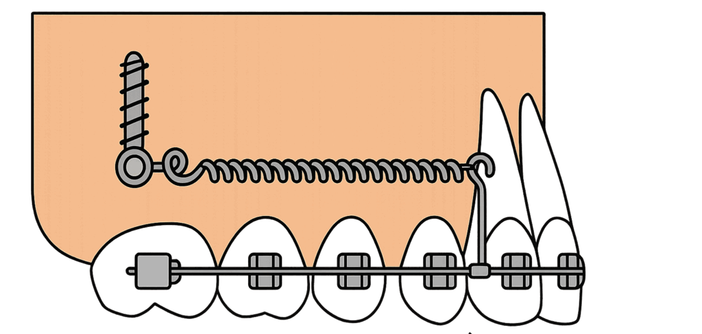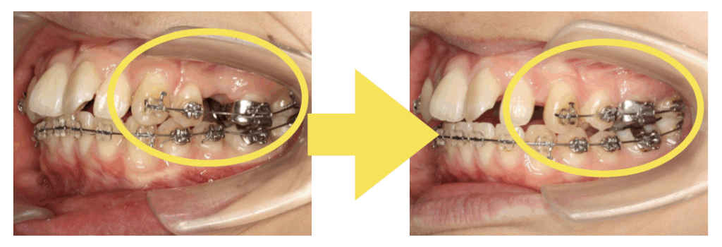 ↑ 前歯と奥歯の間にある犬歯(および小臼歯)を移動しています