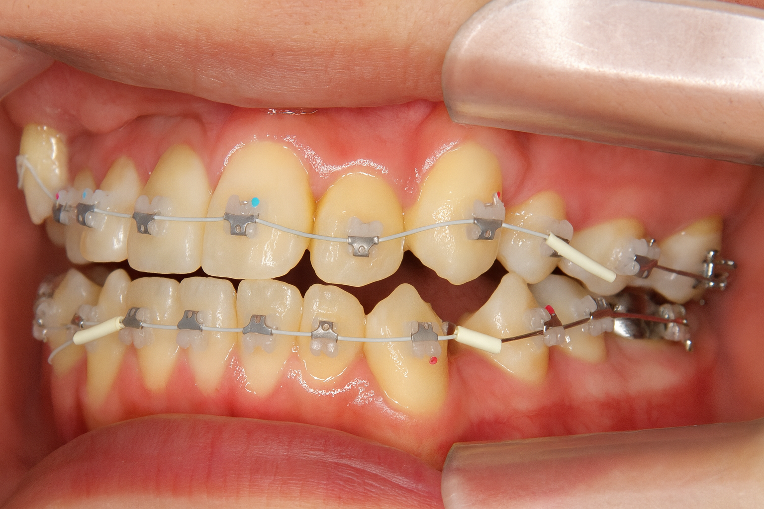 準備が整ったら、いよいよ固定装置をお口の中に設置します。ワイヤー矯正のスタートになります。