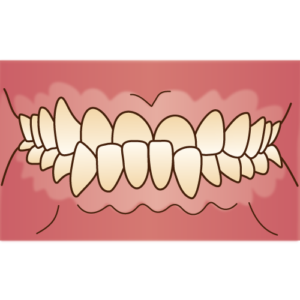 前歯が逆だと、前歯や犬歯でガイドしにくく、奥歯が横方向の力を受けやすい
