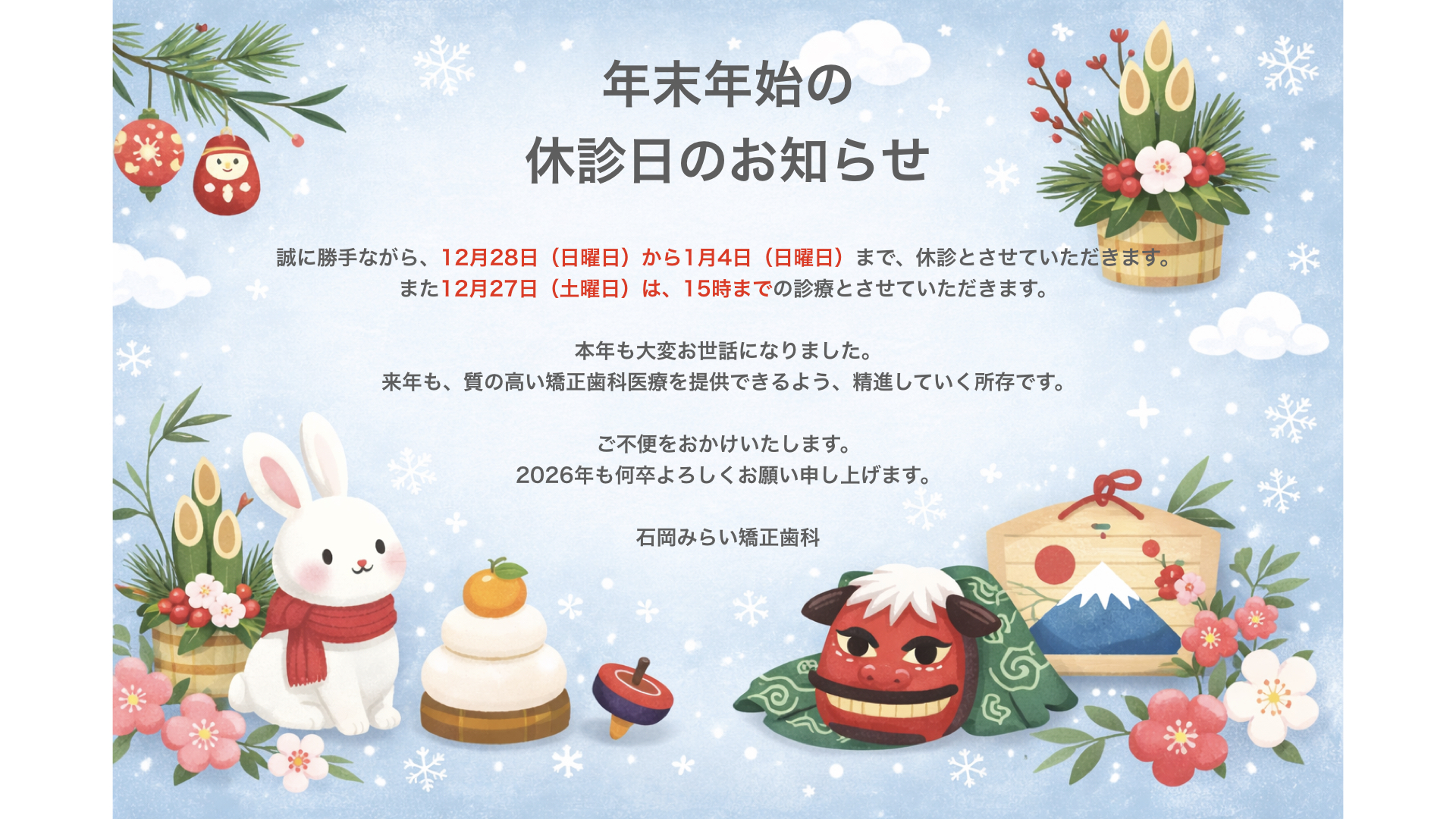 来年も、質の高い矯正歯科医療を提供できるよう、精進していく所存です。